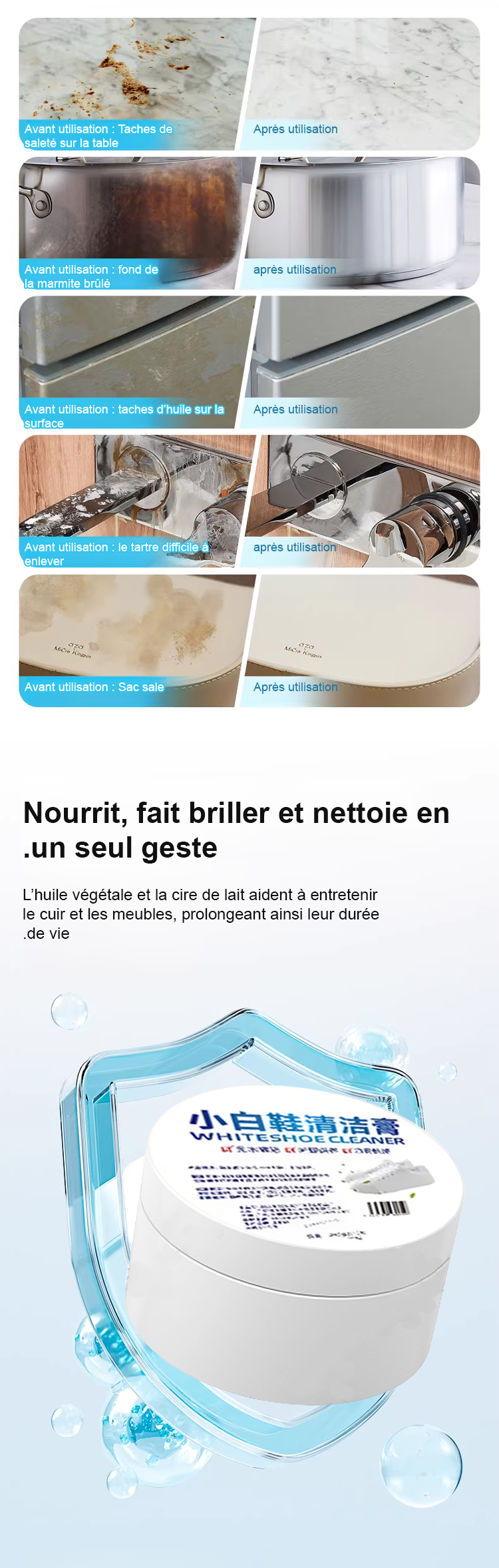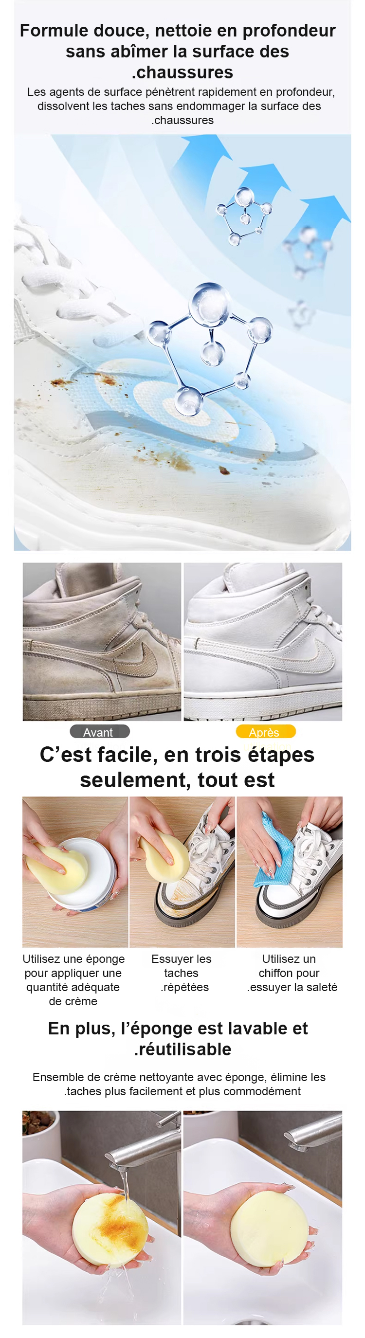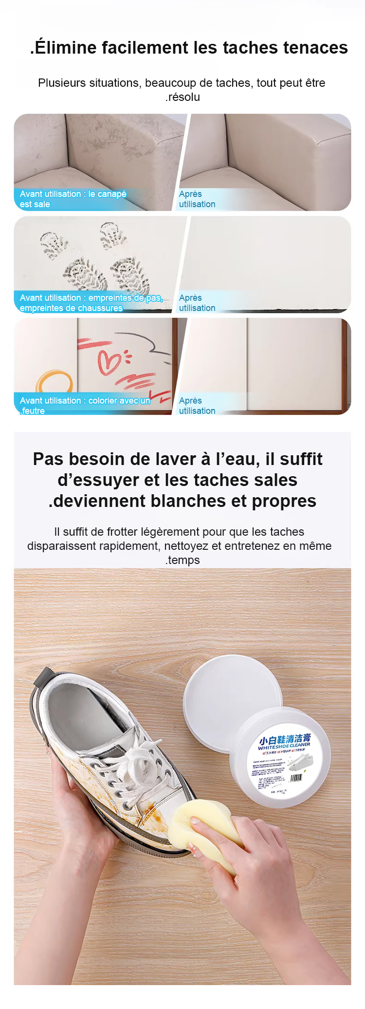 Effaceur de Taches pour Chaussures Blanches, Nettoyage Facile et Rapide