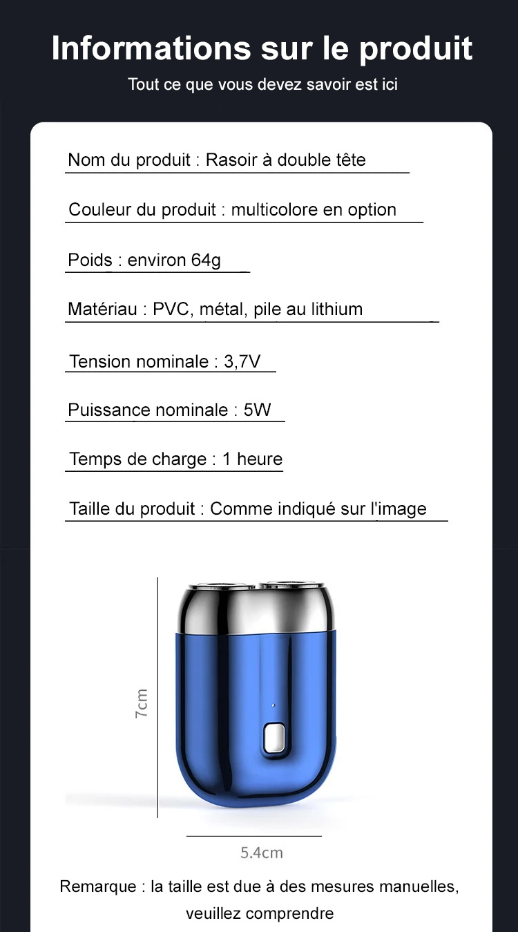 Importé d'Allemagne, rasage rapide, moteur haute puissance 🚀, capable de gérer facilement même les barbes les plus épaisses 🌟. Une seule charge peut durer 60 jours 🔋, ce qui est très pratique pour les voyages ou les déplacements fréquents ✈️.